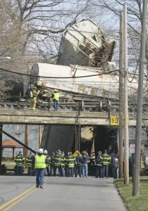 The second is one I contributed to out of Newton Falls where a CSX train derailed early Monday morning. The crash woke some residents and left two train cars dangling from a bridge through the town. About 200 residents were evacuated when crews suspected that the train may have leaked dangerous chemicals.