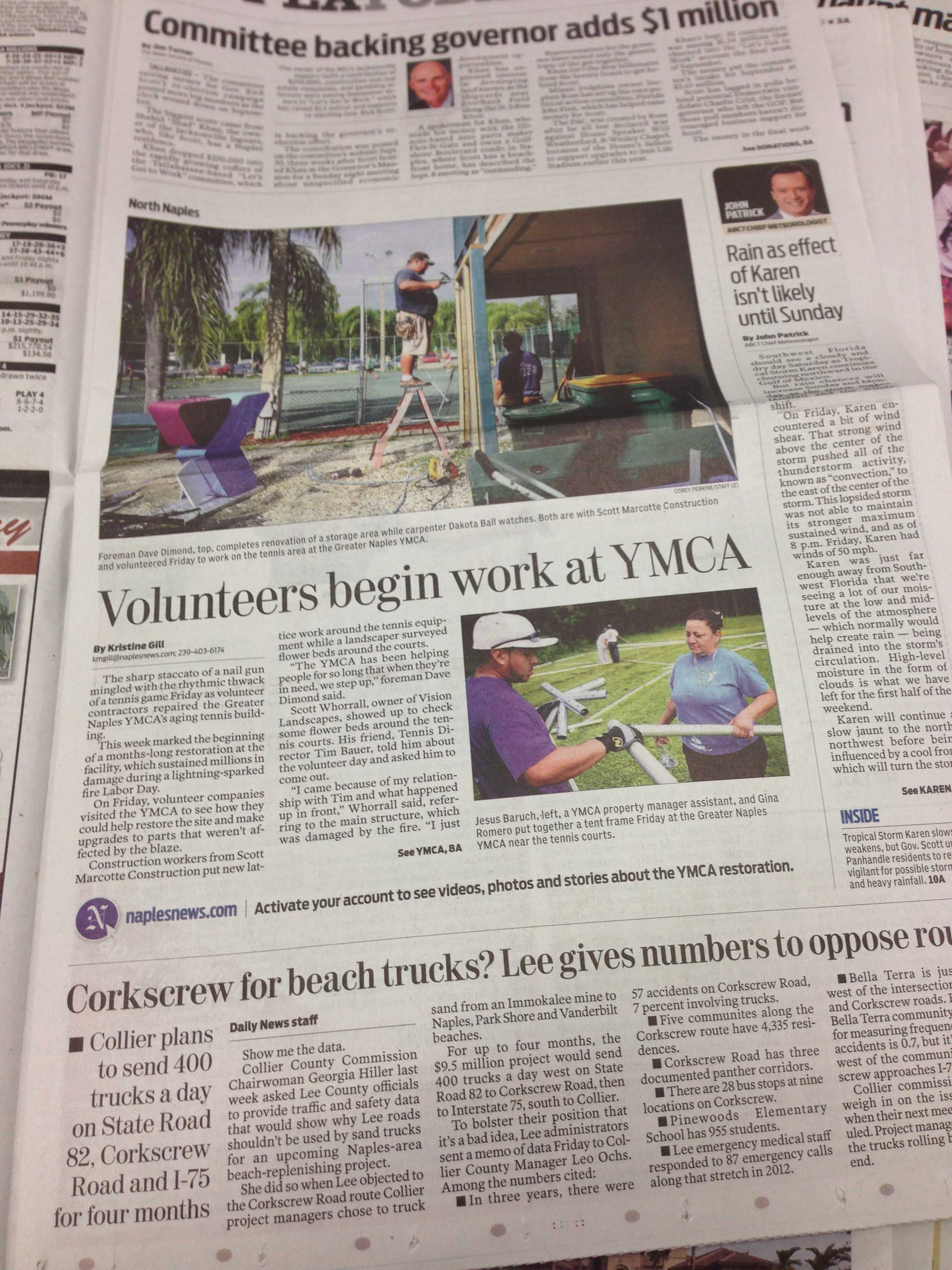 The next two pieces were live assignments, which I tried to write with a more creative lead. I covered the opening of a community garden and a volunteer day at the local YMCA, which was damaged in a major fire last month. Our paywall won’t let you read those stellar leads, but if you’re curious you can zoom in on the pics!