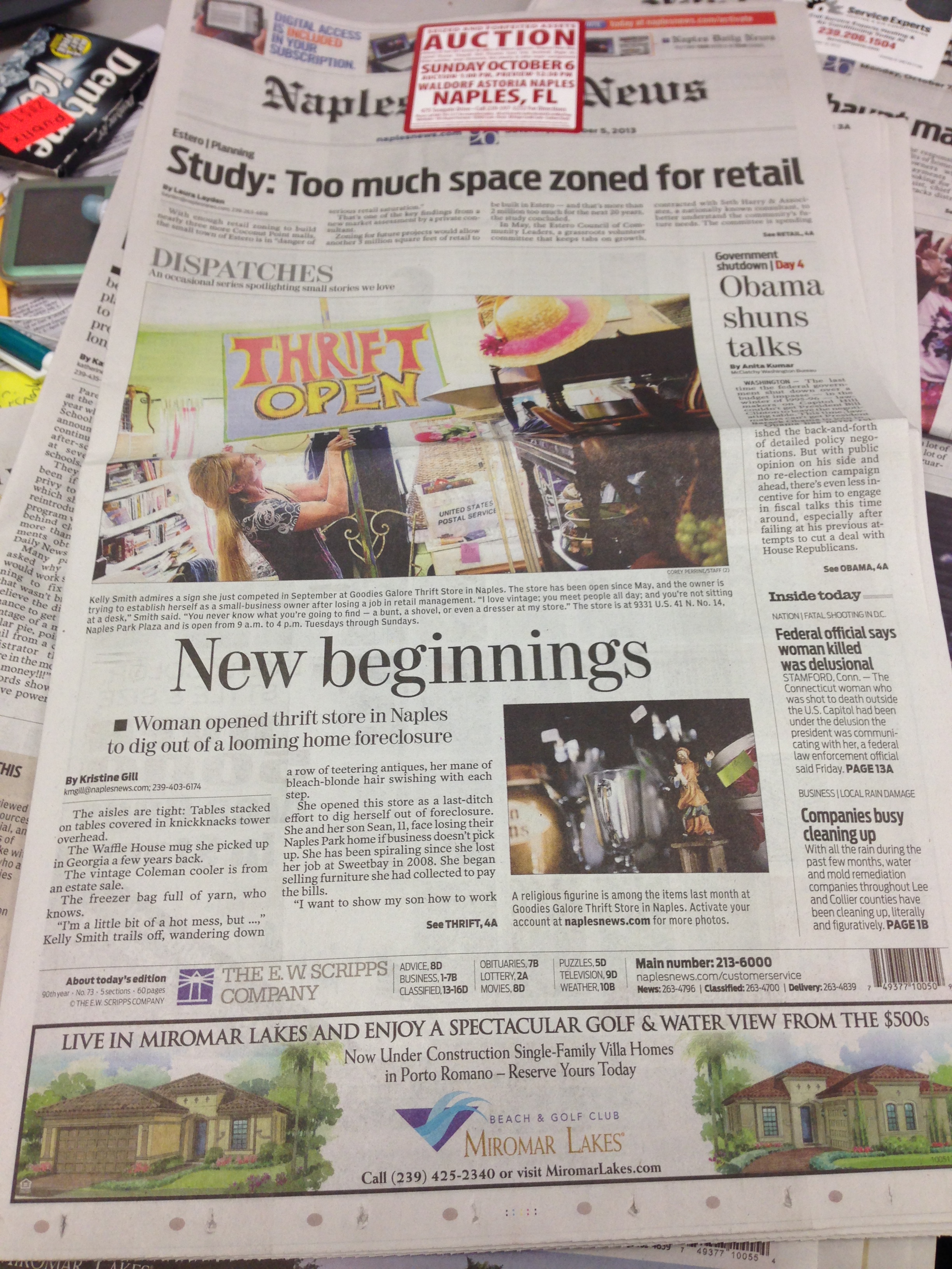 Here’s a sampling of some weekend work. The first was a Saturday centerpiece for a new series I suggested called Dispatches. It’s an occasional feature the reporting staff will do on relatively small stories in the community. It’s a chance for us to take a more literary approach to our writing. I’m happy with my first piece about a woman who opened a thrift store in a last-ditch effort to stay out of foreclosure.
