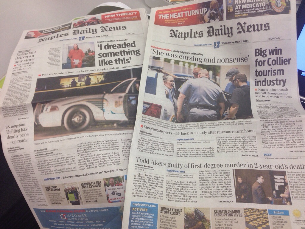 Last week, I wrote four front-page stories about the shooting death of a Naples man following a 10-year feud with his neighbors.